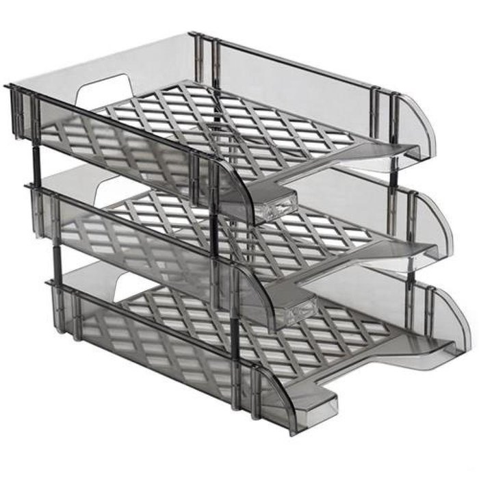 SUPORTE ORGANIZADOR MODULAR TRIPLO PARA ARQUIVOS 3 DIVISORIAS BANDEIJA DE MESA DOCUMENTOS PAPEL FUME