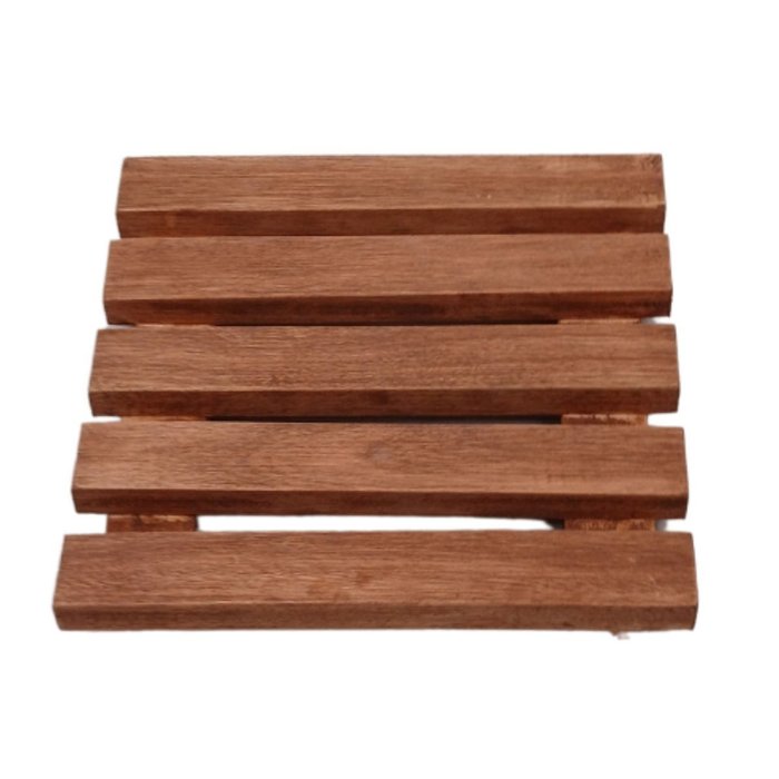 Para garantir maior proteção e durabilidade, o suporte recebe verniz UV Marítimo, que cria uma barreira eficiente contra cupins e fungos responsáveis por apodrecer a madeira. Isso possibilita o uso seguro em áreas expostas, como jardins, varandas, sacadas e áreas gourmet.