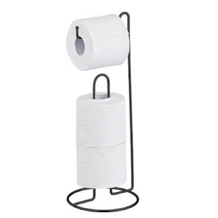 Kit com 02 unidades do suporte p/papel higiênico luxo de chão fabricado em aço epoxi preto acetinado, material conhecido por sua durabilidade e resistência. O item irá auxiliá-lo a organizar o espaço de uma forma muito mais prática e moderna. O produto ainda conta com capacidade para armazenar 03 rolos de papel-higiênico. Leve para o seu dia a dia um produto versátil e funcional.