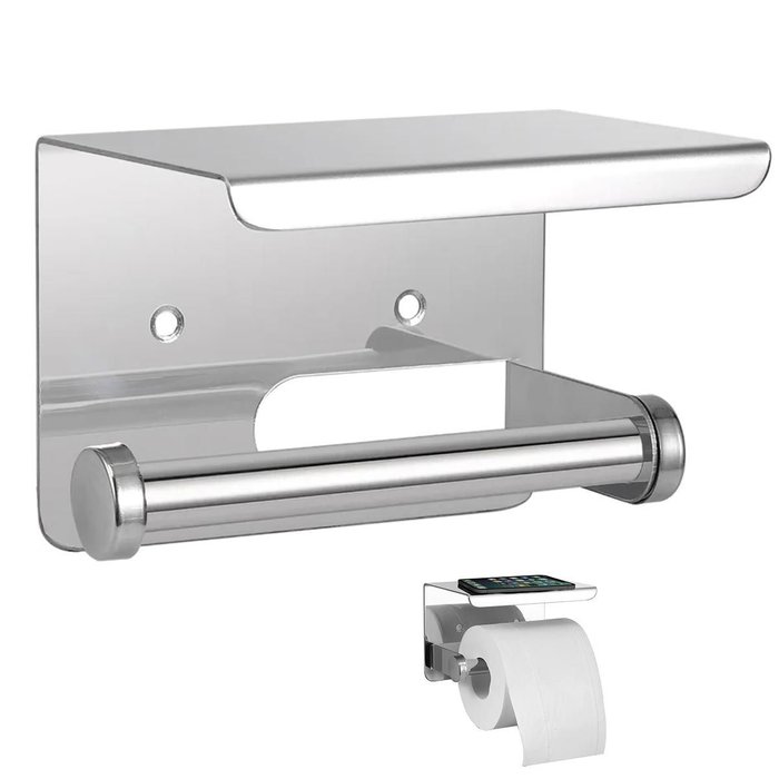 Suporte Papel Higienico Inox Banheiro Lavabo Prateleira Apoio Celular Multiuso Porta Objeto Resisten