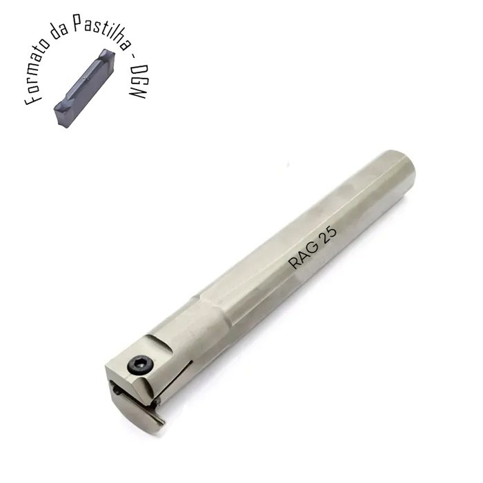 Suporte Para Bedame Interno Ø 25mm - RAG para DGN 2MM O QUE É O SUPORTE RAG 25 O Suporte Intercambiável, de um modo geral, é um acessório utilizado para a fixação de pastilhas. São eles os responsáveis por dar o sustento do inserto para realização das operações nas maquinas operatrizes.Cada modelo de pastilha demanda um tipo de suporte diferente, que caracteriza de acordo com as suas medidas, formatos e modelos.Desse modo, uma Pastilha TNMG não é compatível com um suporte para bedames, por exemplo. Requerem características próprias, ideais para cada ferramenta. - Suportes RAG requerem pastilhas DGN 2MM. CARACTERÍSTICAS DO RAG 25 - Quadrado do Suporte: 25 MM;
