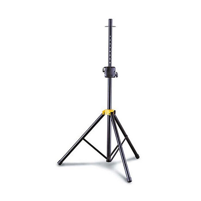 Suporte para Caixa Acústica com Auto TravaSuporte com ajuste de altura quik -n- ez autolock tubos de alumínio para a força e leveza.• material: alumínio• ajuste de altura: manivela para ajustes mínimos• altura: 1150 - 2180mm• raio da base: 75cm• capacidade: 45kg• aceita flanges de 35 e 38 milímetros• peso: 5,8kg• cor: preto/amarelo