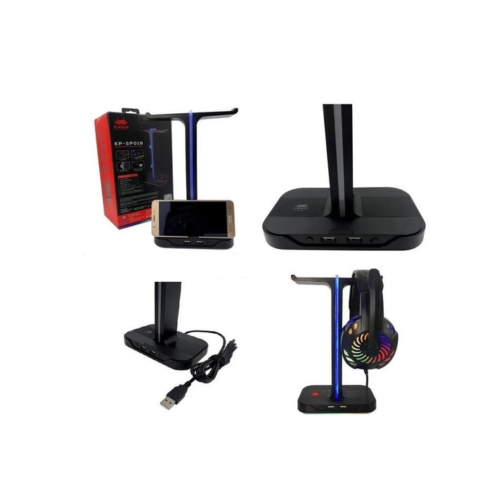 SUPORTE PARA FONE DE OUVIDO LED DUPLO GAMER HEADSET LUZ RGB USB MESA BANCADA
