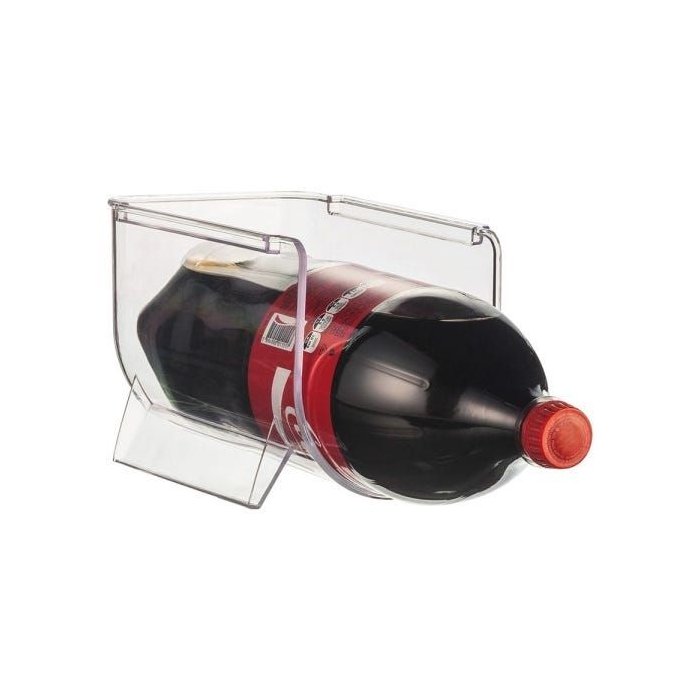 O suporte de garrafas PET é feito em acrílico resistente, empilhável, otimiza espaço em sua geladeira garantindo um correto armazenamento de sua bebida.