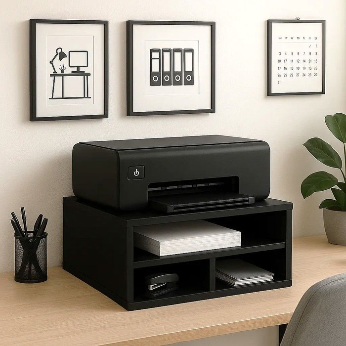 Suporte para Impressora Prateleira com Divisórias para Mesa:preto