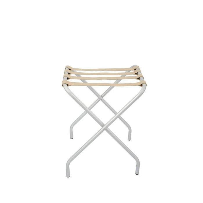Suporte Para Mala Anodização Fosco Tira Em Couro Bege Sem Encosto - 59X52X52 Cm