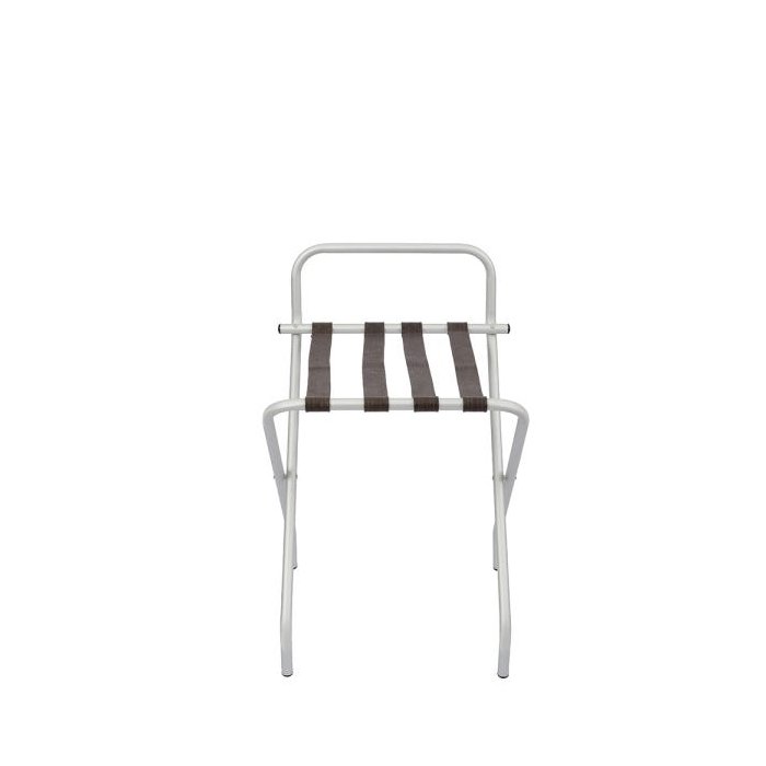 Suporte Para Mala Anodização Fosco Tira Em Couro Café Com Encosto - 74X52X52 Cm