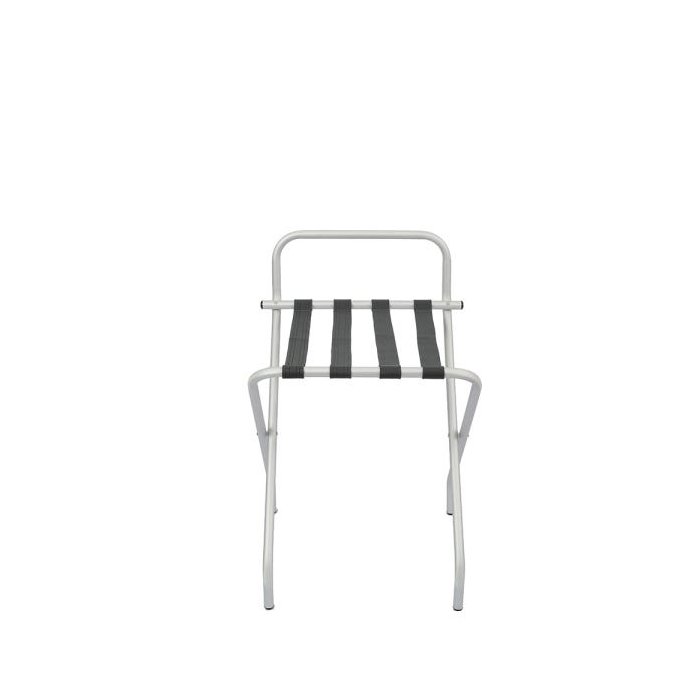 Suporte Para Mala Anodização Fosco Tira Em Couro Cinza Com Encosto - 74X52X52 Cm