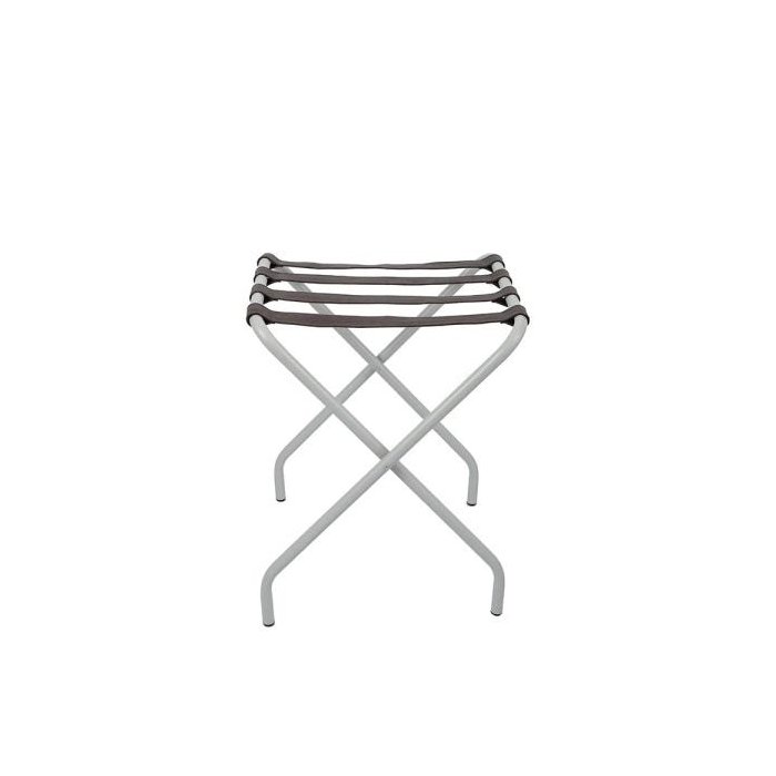 Suporte Para Mala Pintura Eletrostática Alumínio Fosco Tira Em Couro Café Sem Encosto - 59X52X52
