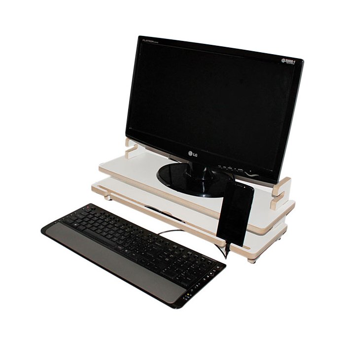 Suporte para Monitor de Mesa.Mantenha seu home-office ou escritório organizado e funcional com esse moderno Apoio de mesa para monitor.Material: mdf 15mm BrancoDimensões: Dois tampos de 20cm de largura por 54cm de comprimento.Duas regulagens de altura; 10cm ou 14cmEnviamos desmontado.Montagem apenas por encaixe.Siga o folheto informativo.Acabamento com bordas cruas e arredondadas.Apoio para celular (destro ou canhoto)Apoio para canetaVão entre prateleiras.Espaço para teclado.Não resistente a água.Limpeza com pano seco.