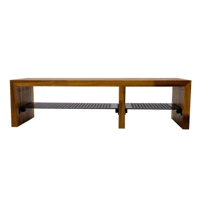 Apoio de monitor de madeira com prateleiras de metal. Pode ser usado para um ou dois monitores.Este apoio de monitor mantém sua mesa organizada e dispensa a necessidade de braços articulados para elevar a altura da tela para que fique na direção dos olhos.Regular os monitores em altura suficiente para manter postura ereta a todo momento é imprescindível para ergonomia e evitar dores nas costas, pescoço e olhos.Disponível em dois tamanhos, grande e pequeno.Material: Madeira e AçoPequeno: 55,5x15x20cm