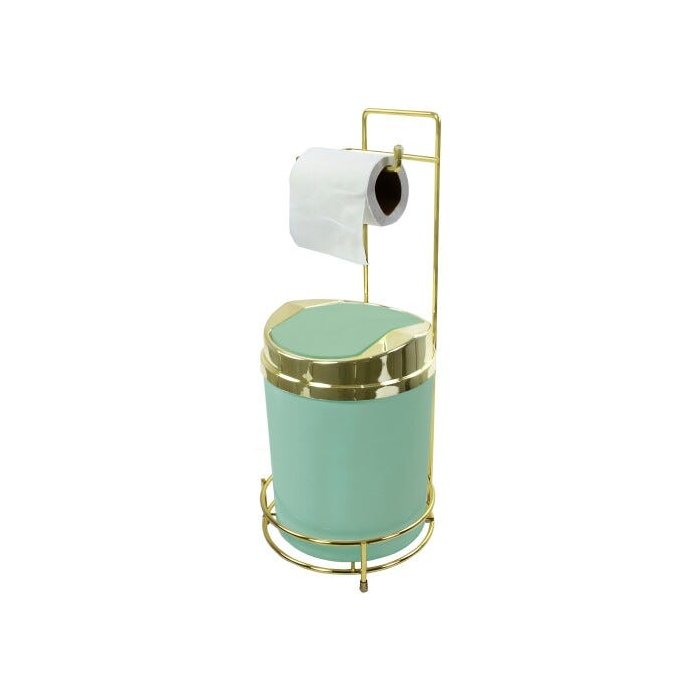 Suporte Para Papel Higiênico Lixeira Basculante 5 Litros - Dourado - Verde claro