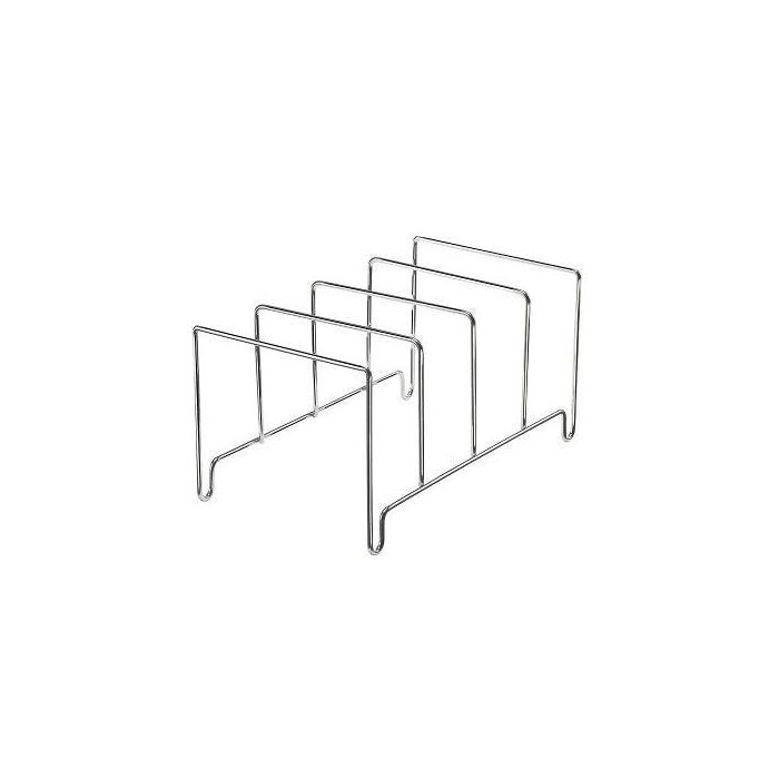 Suporte para Refratários e Frigideiras de Apoiar Cromado Deixe suas formas, refratários ou frigideiras bem organizados no armário ou também use o suporte como escorredor na sua pia. Medidas: C. 27,3 x L. 15,5 x A. 14,0 cm Material: Aço Cromado