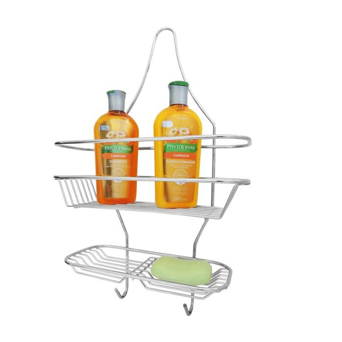 O porta shampoo e sabonete traz praticidade na sua rotina. Deixe os xampus organizados para quando tomar banho estejam ao seu dispor. Com a saboneteira integrado ao aramado do porta shampoo você tem dois em um.