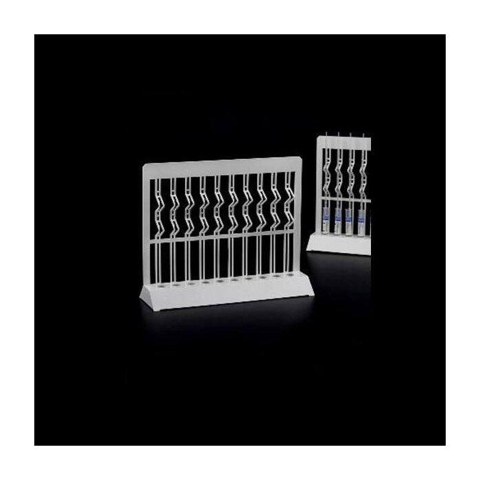 - Este suporte (estante) dispõe de 10 posições numeradas e garante a posição da pipeta perfeitamente vertical.
