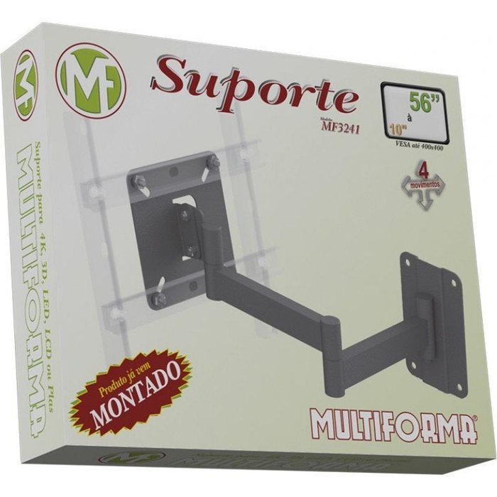 Suporte para TV 10 a 56 Articulado 4 Movimentos Oled/4K/3D/Led/LCD Ou Plasma Preto Mf3241