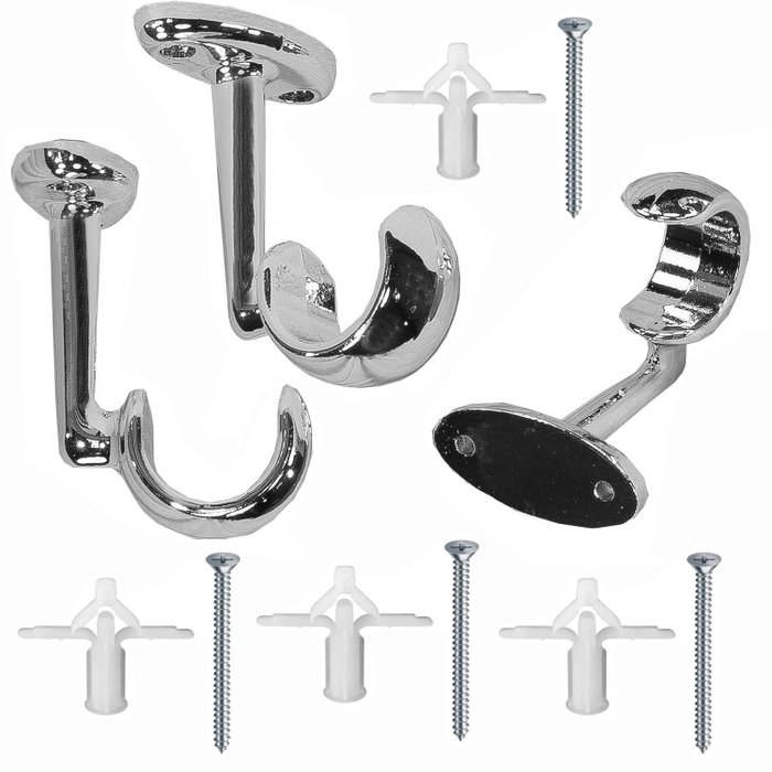 Suporte para Varão de Cortina de teto gesso resistente cromado alumínio 5 pçs Decor Ibitinga Suporte