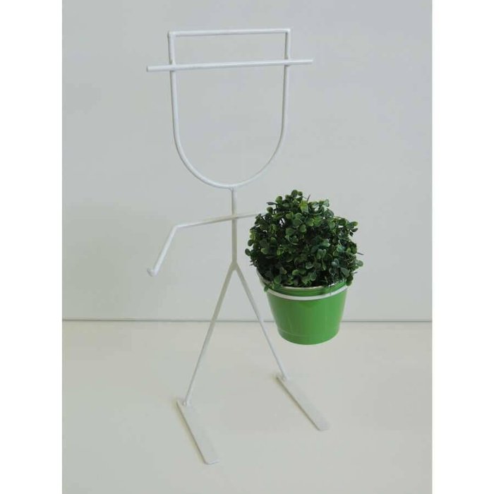 Suporte para Vaso de Flor Modelo Menino em Metal Branco