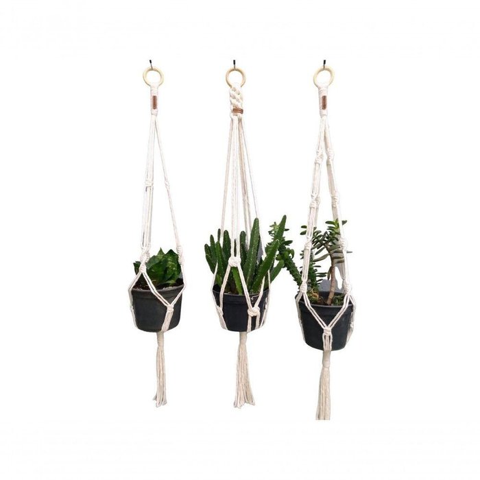 Suporte Plantas Macramê Trio Cor Cru
