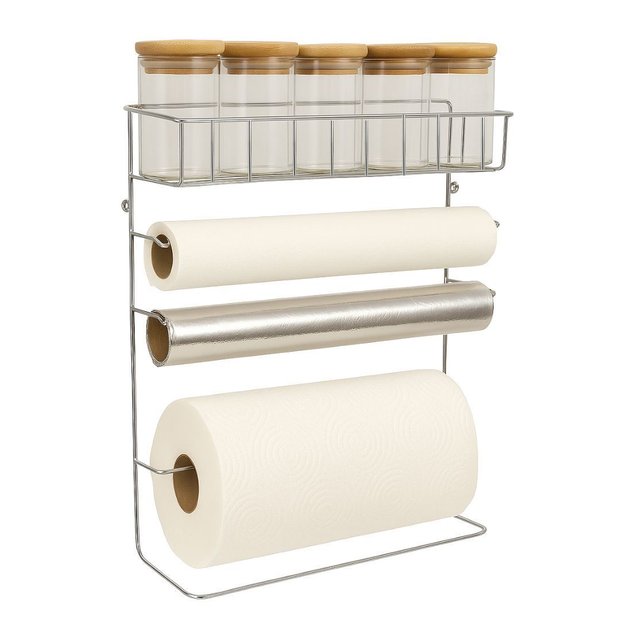 Suporte Cozinha Porta Rolos Papel Toalha e 5 Potes Hermético