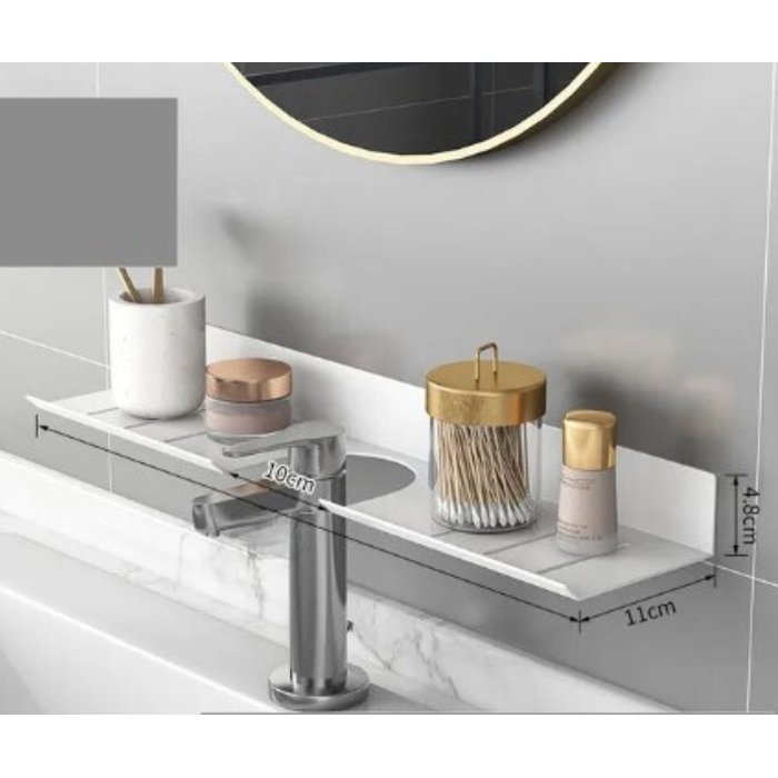 Linda Prateleira suspensa para lavatório, sendo utilizada para otimizar o espaço em cima da pedra do lavatório. acondicionando assim saboneteiras e produtos de hihiene.