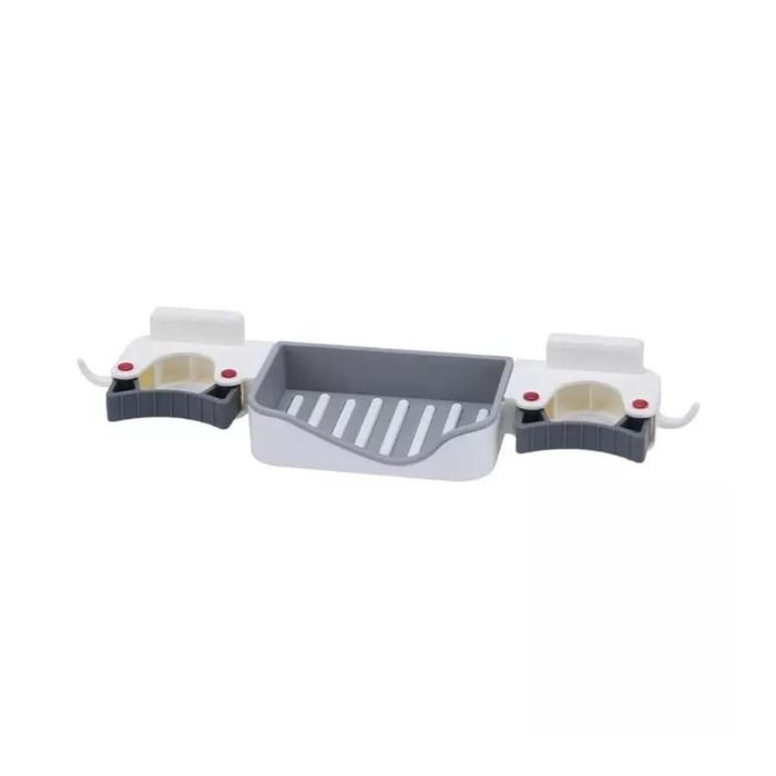 Organize seu banheiro com o Suporte Para Sabonete Vassoura Rodo De Parede! O Suporte Para Sabonete, Vassoura e Rodo é uma ótima maneira de deixar seu banheiro, ou lavanderia mais limpa e organizada. Ele possui dois apoios emborrachados para rodos e vassouras, uma saboneteira com revestimento removível, e ganchos nas laterais para apoiar outros objetos do seu dia a dia. Sua fixação por suporte adesivo não vai danificar a parede em que for colocada.