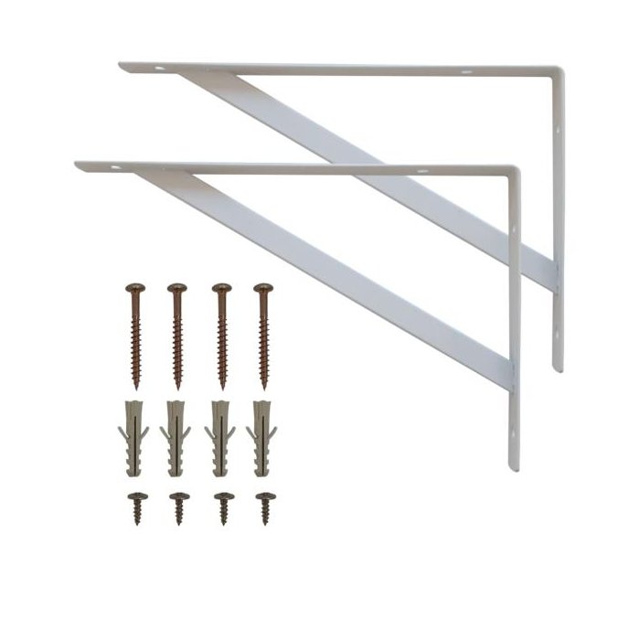 Kit Suporte Mão Francesa Branca Simples ideal para fixação de prateleiras garantindo segurança para seus objetos e decorações.