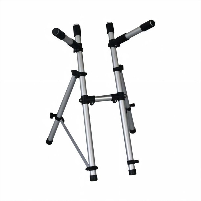 Possui 2 ajustes de posição, é um rack fabricado em alumínio, o que o torna leve para transporte, totalmente desmontável e resistente para suportar aparelhos pesados.