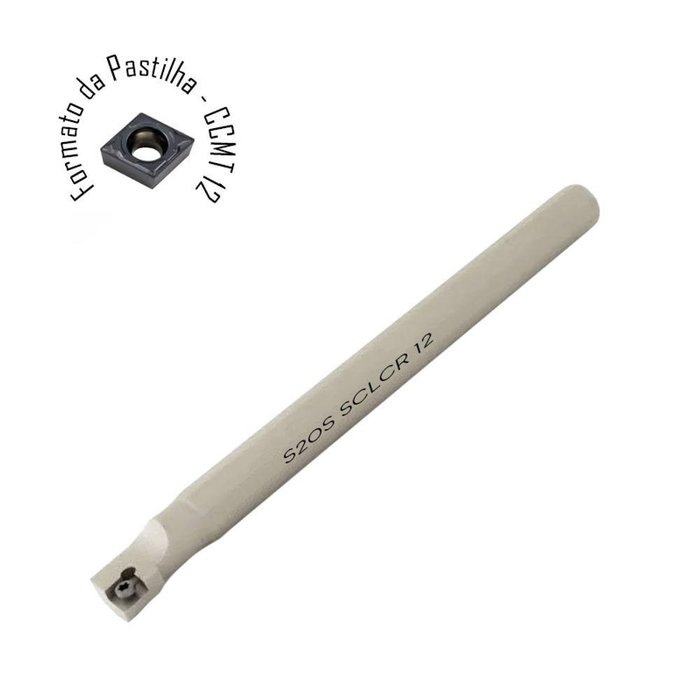 Suporte Torneamento Interno Ø 20mm - S20S SCLCR 12 - CCMT 12O QUE É O SUPORTE S20S SCLCR 12 O Suporte Intercambiável, de um modo geral, é um acessório utilizado para a fixação de pastilhas. São eles os responsáveis por dar o sustento do inserto para realização das operações nas maquinas operatrizes.Cada modelo de pastilha demanda um tipo de suporte diferente, que caracteriza de acordo com as suas medidas, formatos e modelos.Desse modo, uma Pastilha TNMG não é compatível com um suporte para bedames, por exemplo. Requerem características próprias, ideais para cada ferramenta. - Suportes S20S SCLCR 12 requerem pastilhas CCMT 12 CARACTERÍSTICAS DO S20S SCLCR 12- Quadrado Suporte: 20 MM;