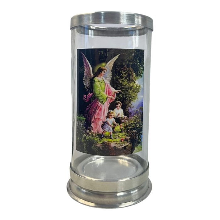 Suporte Vela 7 Dias Anjo da Guarda 18 Cm Vidro e Alumínio