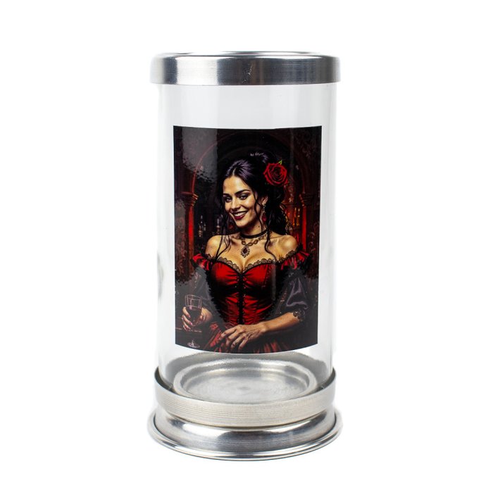 Castiçal, Copo de Vidro para Vela de 7 dias com base e borda de alumínio Antichama.