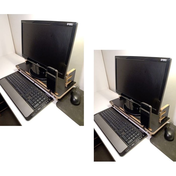 2 Unidades do Suporte para Monitor de Mesa.Mantenha seu home-office ou escritório organizado e funcional com esse moderno Apoio de mesa para monitor com regulagem de altura para melhorar seu conforto ao trabalhar evitando dores no pescoço, ombros e coluna.Material: mdf 15mm pretoDimensões: Tampo de 19,5cm de largura por 54cm de comprimento.Três regulagens de altura; 6cm, 10cm ou 14cmEnviamos desmontado. Montagem apenas por encaixe.Siga o folheto informativo.Acabamento com bordas cruas e arredondadas.Vantagens:*Apoio para celular (destro ou canhoto) do lado esquerdo e direito com saída para cabo do carregador.*Apoio para caneta com vão para facilitar na hora de retirar.*Vão entre prateleiras para guardar agendas, cadernos ou documentos.*Espaço para guardar o teclado quando não estiver usando e librar mais espaço na mesa.*Regulagem de altura para melhorar seu conforto ao trabalhar evitando dores no pescoço, ombros e coluna.Não resistente a água.Limpeza com pano seco.Para conhecer todos os nosso produtos clique em: "VER mais anúncios do VENDEDOR".