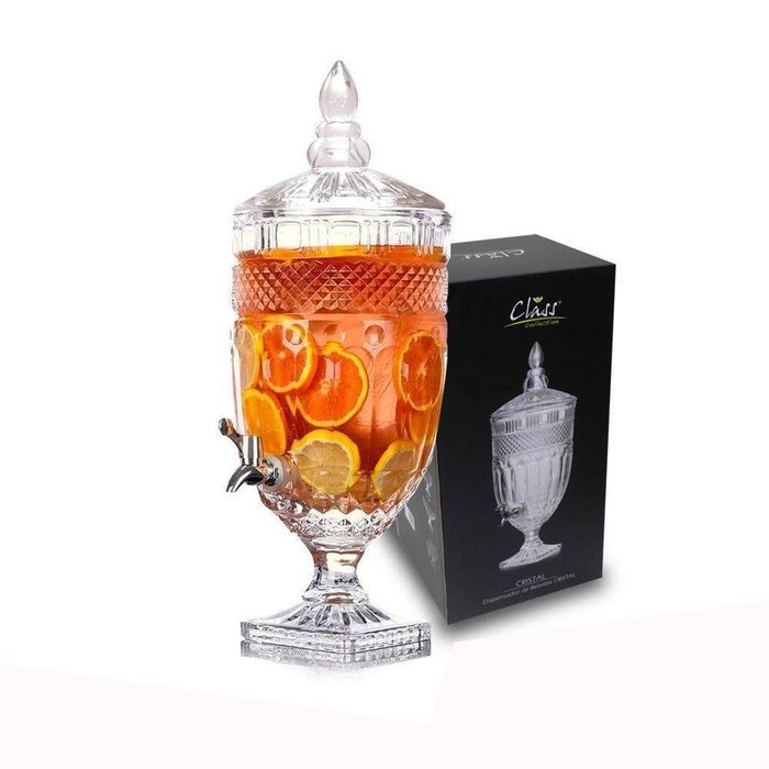 Elegantíssimo dispenser de bebidas fabricado em cristal de excelente qualidade e resistência.Acompanha torneira de plástico durável e fácil de abrir que garante o fechamento completo e seguro.O produto apresenta design luxuoso com ricos detalhes em relevo por toda a parte externa.Ótima opção para servir águas aromatizadas, batidas, refrigerantes, sangrias ou uma variedade de sucos refrescantes!Ideal para integrar suas festas e reuniões, deixando sua mesa ainda mais bonita para recepcionar os convidados.Marca: Class HomeLinha: CristalComposição: VidroCapacidade: 4 litrosPeso aproximado do produto: 5,4 kgDimensões aproximadas do produto: 22 x 22 x 43Peso Aproximado da Embalagem: 5,5 kgDimensões aproximadas da embalagem: 22,5 x 22,5 x 44,5
