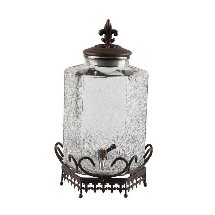 A Suqueira de Vidro e Ferro Vênus Victrix tem seu corpo de vidro todo trabalhado e os ornamentos em ferro completam o charme da peça, tornando-a única. Ela conta com capacidade para 10,9 litros e possui altura, entre torneira e base, ideal para receber diversos tipos de copo.