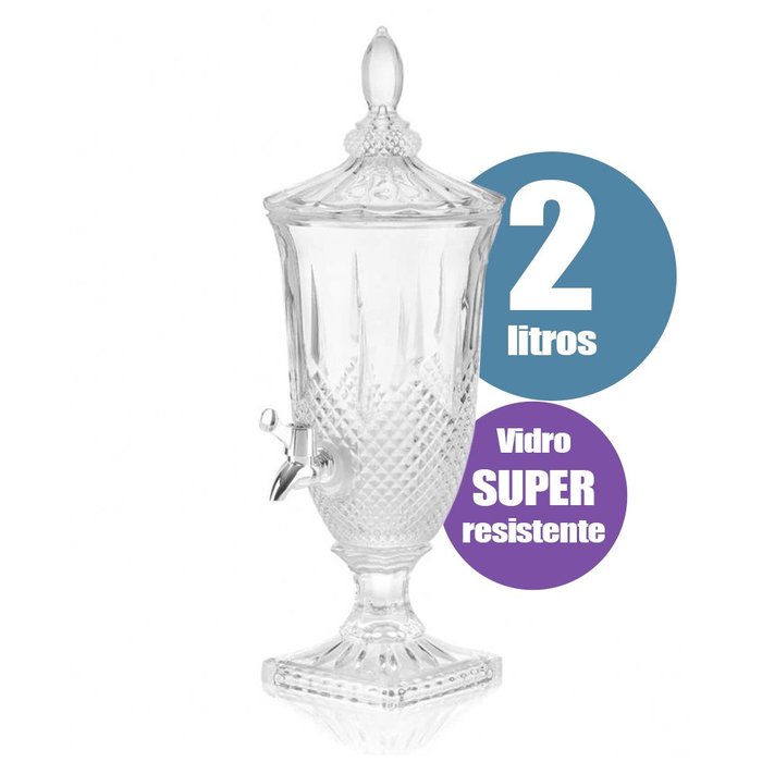 Suqueira Vidro Luxo 2l Suco Água Drink Diamante C/ Torneira