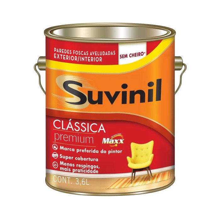 A Tinta Clássica Látex Premium da Suvinil pode ser aplicada em superfícies internas de massa corrida ou reboco, massa acrílica, texturas, concreto, fibrocimento e gesso de ambientes internos e externos. De fácil aplicação, pode ser utilizada com pistolas de pintura, trinchas, pincéis e rolos de espuma. Super concentrado, é necessário diluição com 50% de água potável.