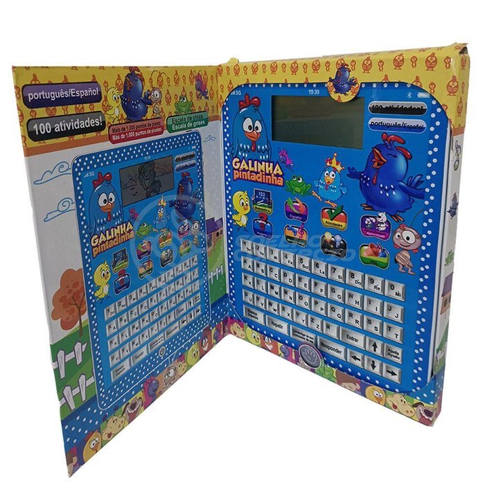 Com uma tela de pixel, irá trazer muita diversão para as crianças com várias atividades educativas como alfabeto, números, notas musicais, que animal é esse, completa palavras, que letra falta, além de musiquinhas. Esse Tablet Didático Infantil tem um visual divertido e moderno e ajuda a criança a desenvolver raciocínio logico e criatividade com as 100 atividades divertidas. O tablet didático também proporciona a opção de utilizar o áudio em espanhol, o que torna tudo mais incrível! O tablet infantil contém as seguintes funções: - Aprendizagem.- Questão- Matemática.- Música & Jogo Características:- Modelo: Galinha Pintadinha