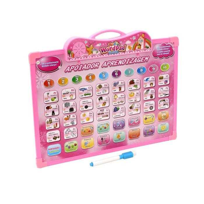 Quando a criança apertar as teclas deste brinquedo, vai ter o som de cada letra do alfabeto, números de 1 a 10, melodias e canções.