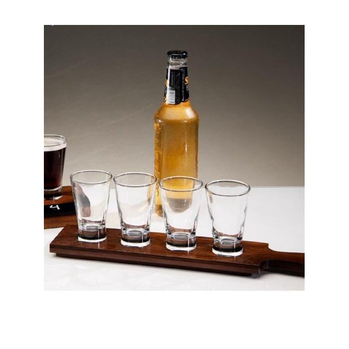 Tábua de degustação fabricada em madeira imbuia que vem acompanhada por 4 copos.