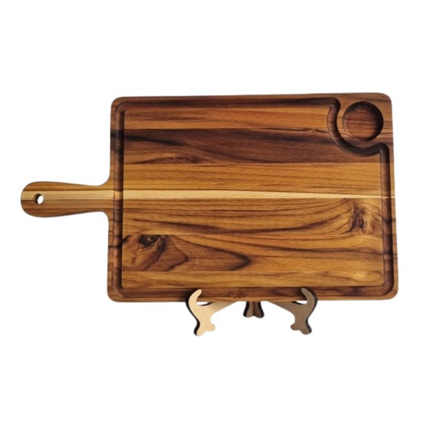 Feita com madeira de alta qualidade, esta tábua robusta é perfeita para preparar e servir carnes e outros alimentos.