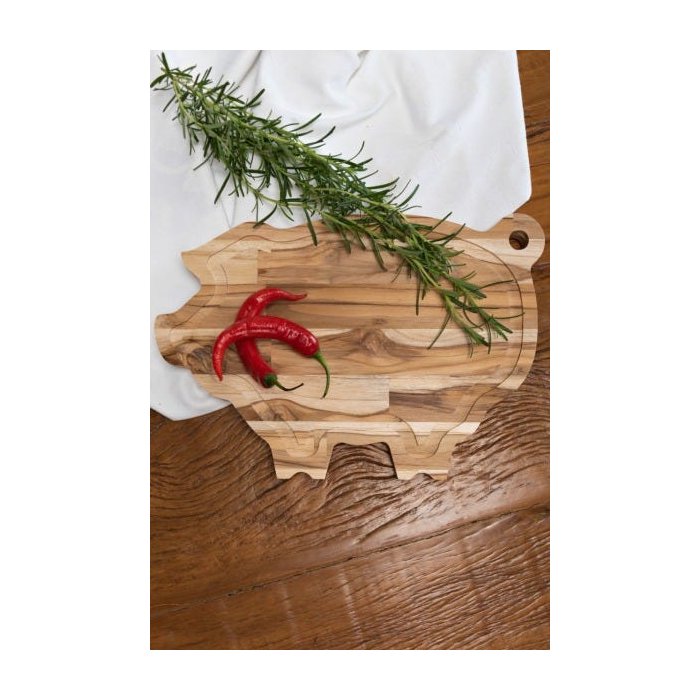 Tábua para cortes de alimentos, produzido em madeira TECA. Indispensável para churrasco, ideal para servir carnes, pois possui canaletas que retém o suco dos alimentos na tábua.