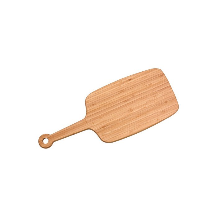Essa é a tábua de corte de bambu com alça 49cm da oikos.