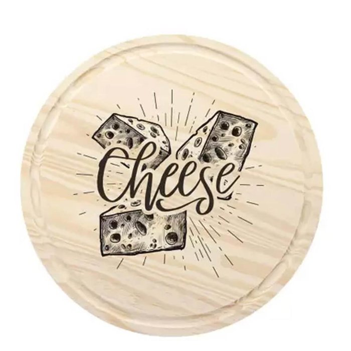 Tábua de Corte Redonda Stolf em Madeira Pinus Decorativa Chesse 24cm