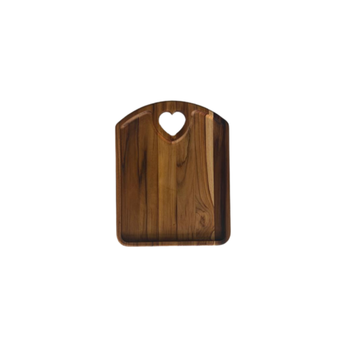 1x Tábua de Servir Coração Vazado com Rebaixo M - Madeira de Teca - 28x22x2cm (400gr)