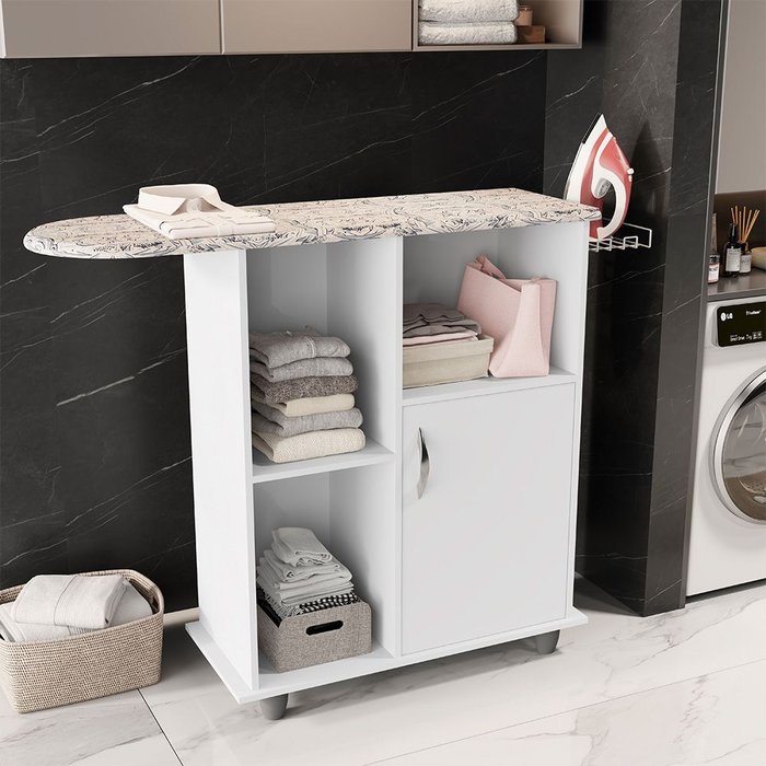 Tábua Mesa Passar Roupas Miami Gabinete Armário 1 Porta Suporte Branco