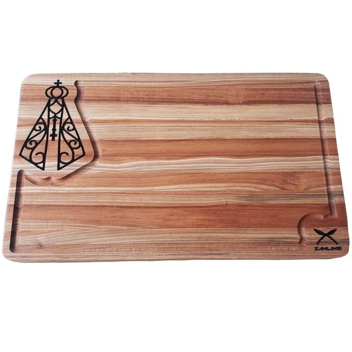 Tábua para Churrasco Grande Madeira 50x30x2,5cm Nossa Senhora Aparecida Canaleta