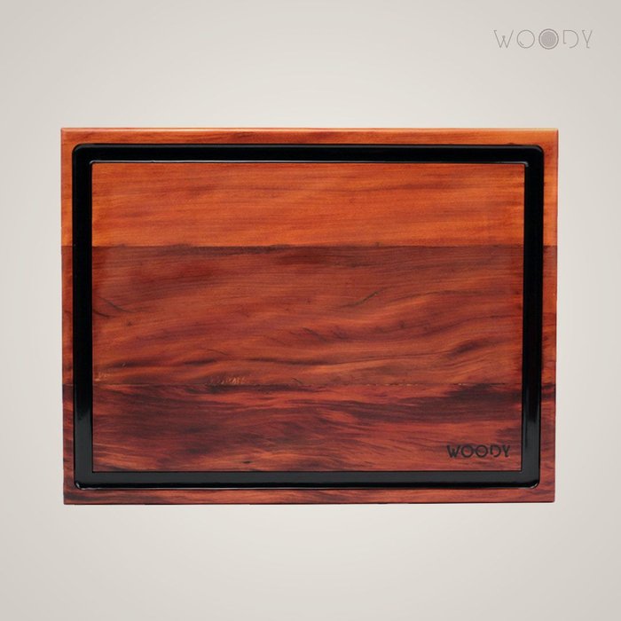 A nossa menor versão da clássica tábua do churrasqueiro Woody 40 x 30 cm. Bela, robusta, forte e durável. Feita em Peroba Rosa, é um item desenvolvido para durar gerações. Detalhe em resina epóxi atóxica.