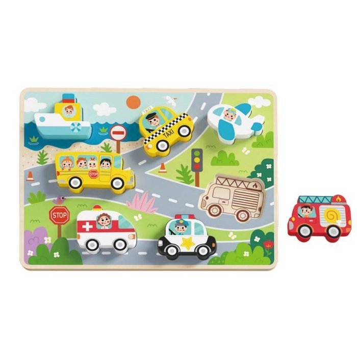 Tabuleiro de Encaixe - Transportes, Peças Grossas de Madeira, da Tooky Toy - Th634