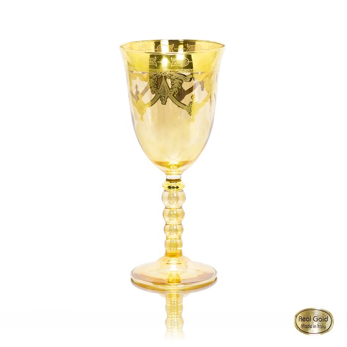 Taça de Água em Cristal Âmbar com Detalhes Dourados