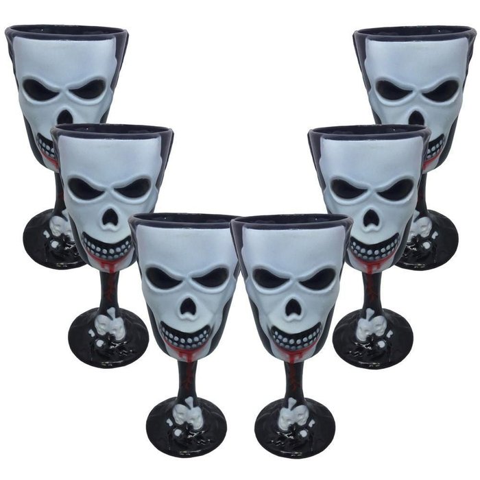 Taça Halloween Acrílico Preta com Caveiras - 6 Unidades